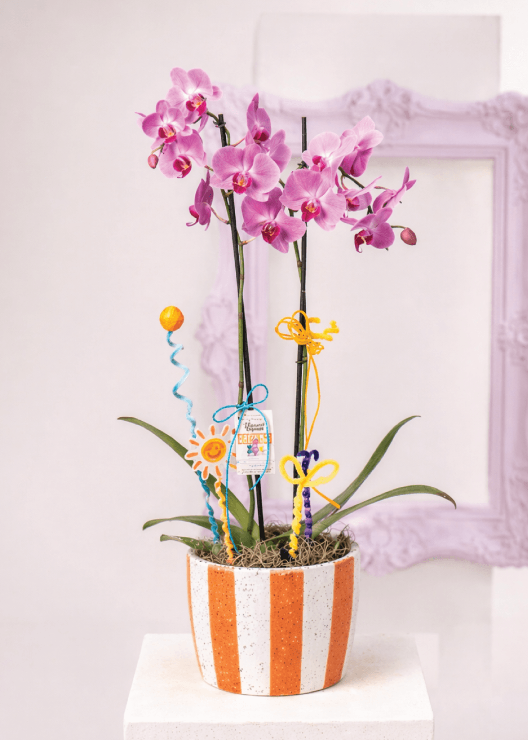 Descripción: Diseño floral para Mother´s Day en jarra de cerámica con medidas aproximadas de 25 cm largo x 50 cm alto.